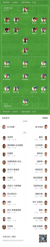 阿根廷替补:12-鲁利、1-贝尼特斯、16-莫利纳、2-福伊特、8-阿库尼亚、14-帕拉西奥斯、10-马斯坦托诺、11-洛塞尔索、21-瓦雷拉、18-帕斯、9-阿尔瓦雷斯、13-何塞-洛佩斯