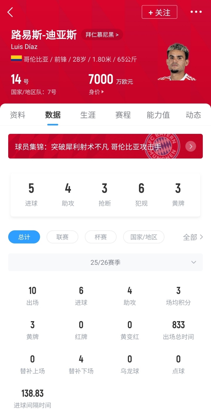 10场6球4助!TA:批评7000万签迪亚斯?但他是拜仁能签的最佳人选